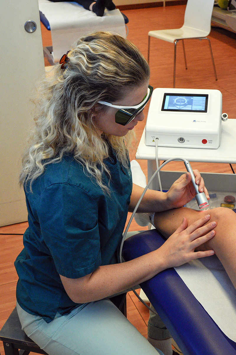 Laserterapia: La laserterapia è una terapia fisica che applica al corpo umano una particolare forma di emissione elettromagnetica (luce infrarossa). A seconda dell’emissione (termica o no) può essere applicata sia in fase acuta che cronica.