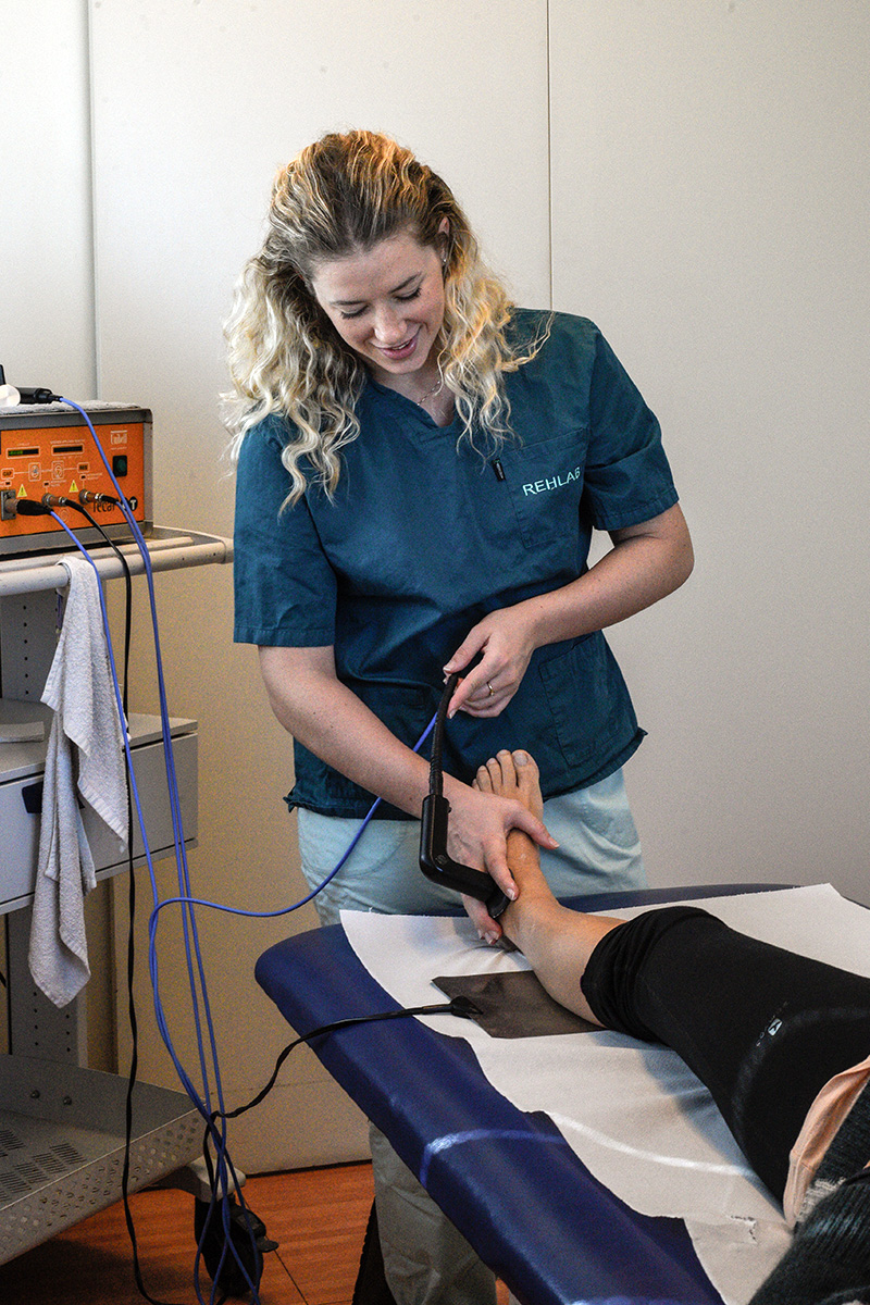 – Diatermia Elettromagnetica: tramite l’emissione di un campo elettrico continuo e pulsato A.C.P. (active control pulse) l’energia elettrica viene convertita in calore, permettendo così di produrre e controllare un aumento della temperatura nelle aree interessate per stimolare i tessuti cutanei e l’apparato muscolo-scheletrico, così da alleviare il dolore e accelerare la guarigione