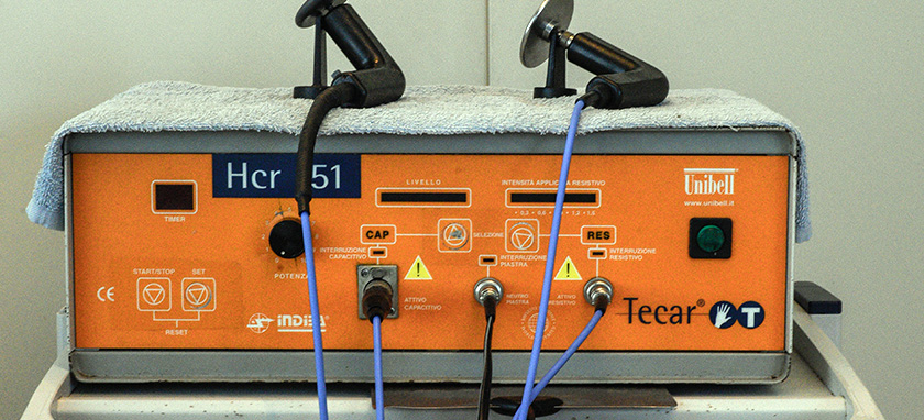 Tecarterapia: La Tecarterapia è una terapia fisica che viene eseguita dal fisioterapista ed è molto utile per ridurre il dolore e l’infiammazione di diverse patologie. Diffusa soprattutto in ambito fisioterapico, la Tecar prevede l’utilizzo di un dispositivo, basato sul principio fisico del condensatore e capace di generare calore all’interno dell’area anatomica bisognosa di cure. La Tecarterapia può lavorare in due modalità: la modalità capacitiva, adatta alla cura dei problemi ai tessuti molli, e la modalità resistiva, indicata per il trattamento dei disturbi ossei, articolari, cartilaginei ecc.